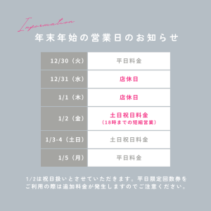 年末年始の休業日と営業時間をお知らせいたします。